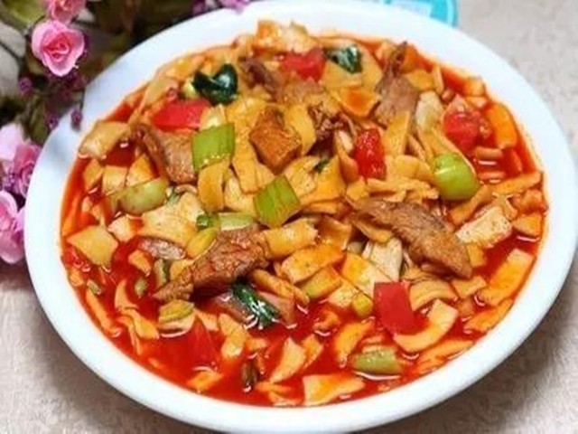 青海人面食中最普遍而又很独特的家常饭。面片具有操作简单、干脆利落,味美悠长特点